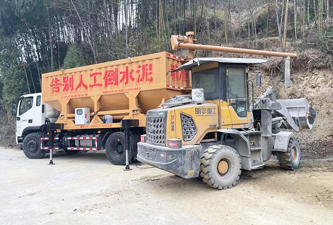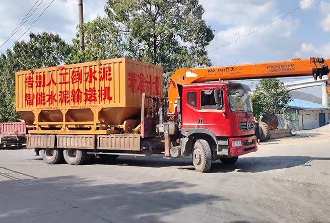 江西省上饒市余干縣南昌大道,古河水泥輸送機(jī)新版50T搭配配料機(jī)、1.5方滾筒攪拌機(jī)施工。一天使用水泥100噸,工期三個(gè)月。遠(yuǎn)程遙控操作,省時(shí)省力省人工成本!