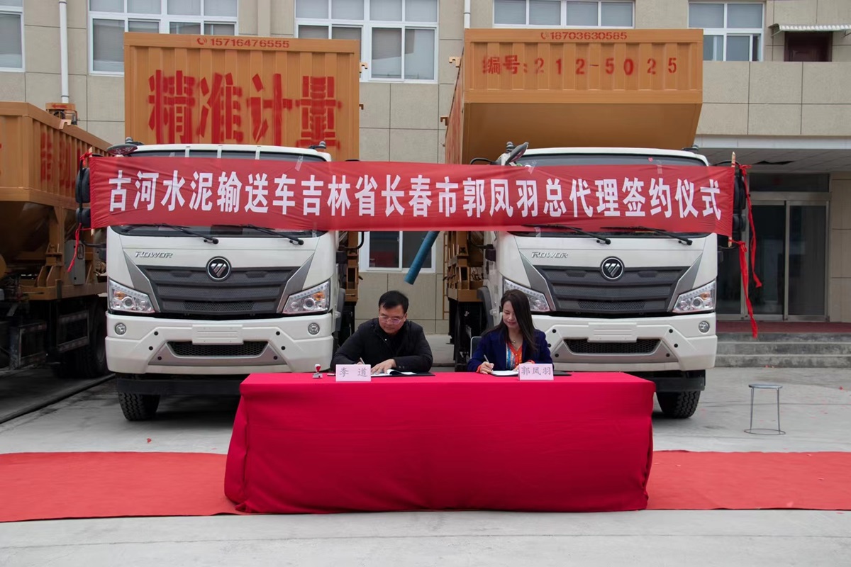 祝賀古河水泥輸送車青海西寧市總代理尹總簽約成功!