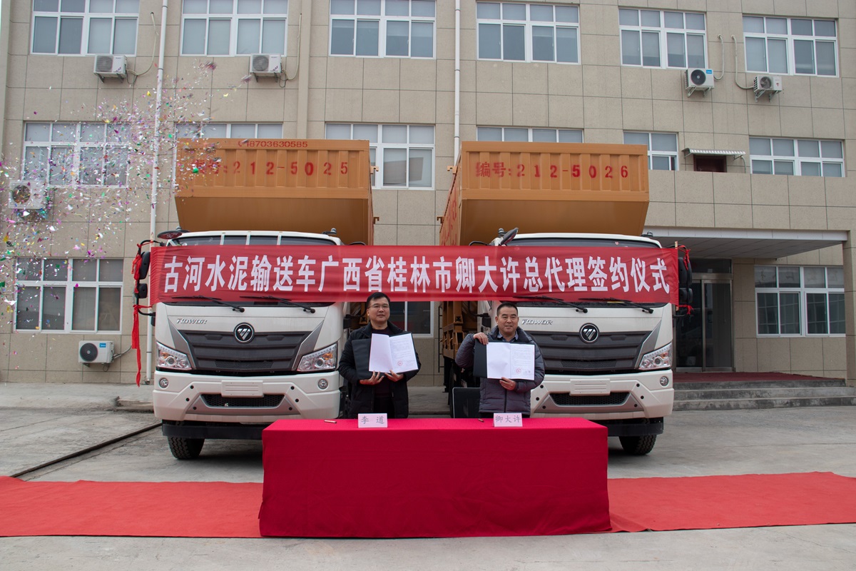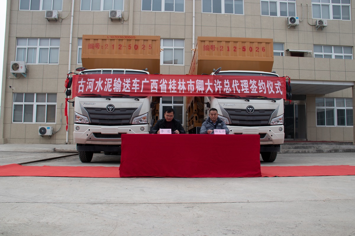 首定1臺(tái)車,6臺(tái)水泥輸送機(jī)!為卿總點(diǎn)贊,為古河點(diǎn)贊,合作發(fā)展,共創(chuàng)未來。
