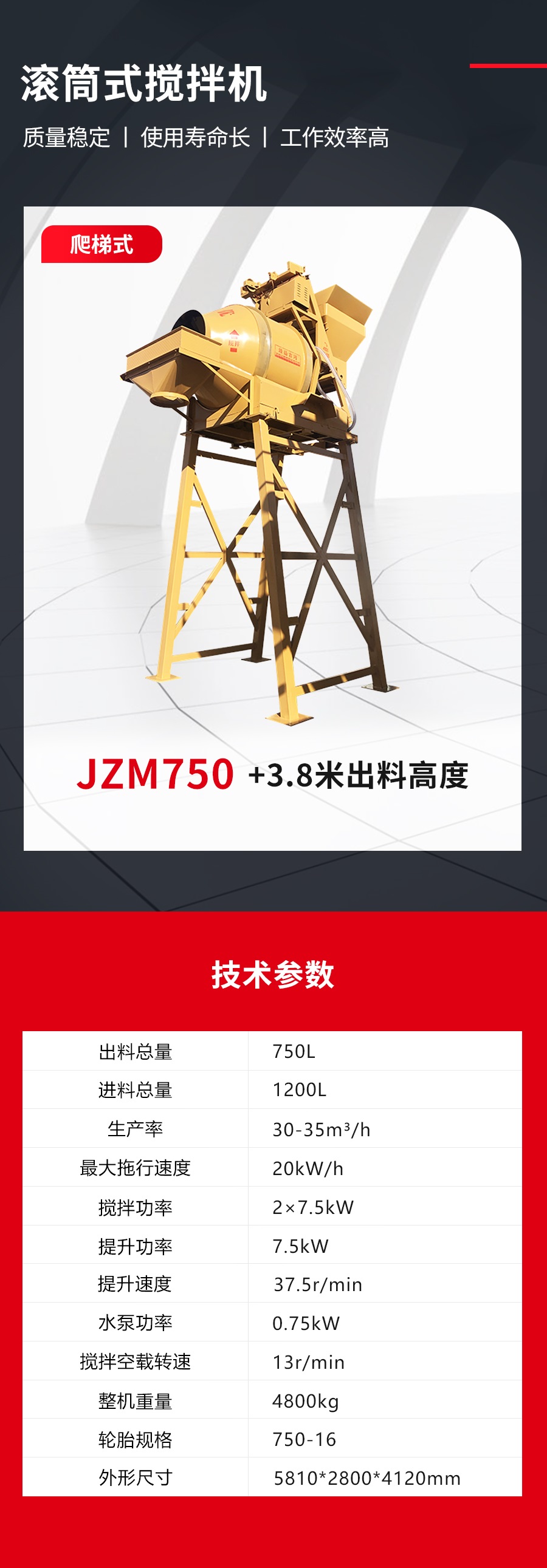 【產(chǎn)品特性】 JZM750(3.8米出料高度)
