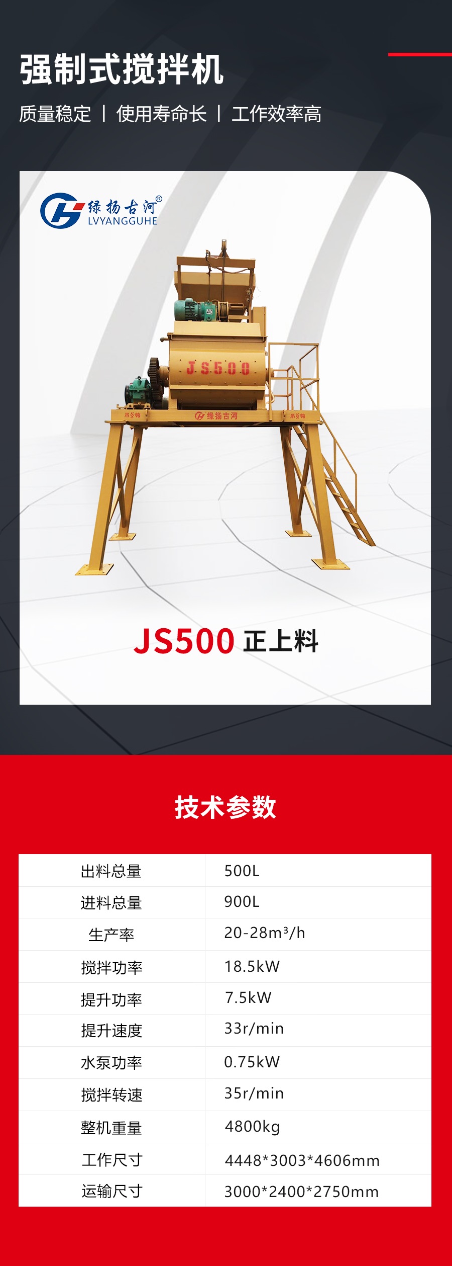 綠揚(yáng)古河攪拌機(jī)JS500正上料